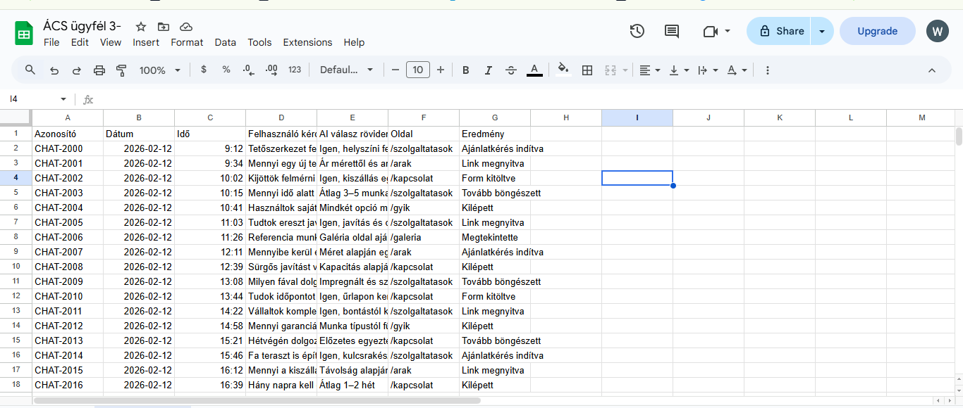 Általában 48 órán belül telepíthető és testreszabható. Én dolgozom az AI tudásán, aztán kapsz egy kódot amit pár kattintással be tudsz építeni a oldaladra.